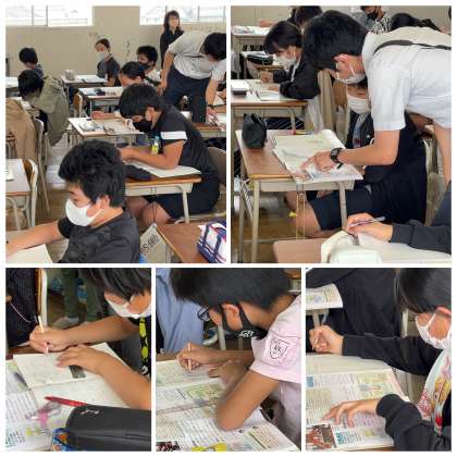 6年生の社会科の授業の様子です。「裁判所の働きについて、調べて整理したことをもとに一文で説明してみよう」というテーマで学習を進めていました。調べたキーワードを使って、わかりやすくまとめることができましたね。
