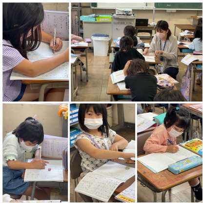 2年生のさんすうのじゅぎょうのようすです。ものさしをつかって、長さをはかるれんしゅうもんだいに、たくさんちょうせんしました。はやくできた子は、かんじのれんしゅうもがんばりました。みんなしゅうちゅうしてがくしゅうにとりくめていて、すてきでしたよ!