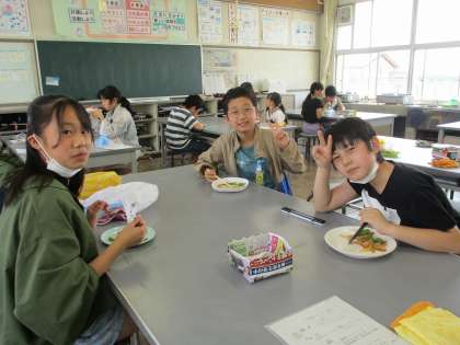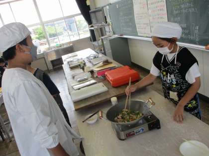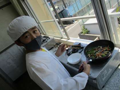 5月24日(火) 調理実習 6年生 公開日 2022/05/24 更新日 2022/05/24 6年 調理実習で野菜炒めを作りました。火が通りやすい厚さに切ったり、火加減に気を付けて炒めたりと、手順通りに作ることができました。苦手な野菜がある児童も、自分たちで作った料理を最後まで残さずに食べていました。おいしくできてよかったね! 6年生