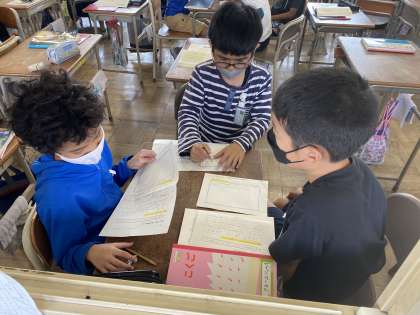 5月25日(水) きいてきいてきいてみよう 5年生 公開日 2022/05/25 更新日 2022/05/25 5年 国語の学習では「きく」ということに焦点をあてた単元に取り組んでいます。他の人の話を聞いて、メモをしたり、質問の内容を変えたりすることで、これからの発表にいかしていきます。 5年生