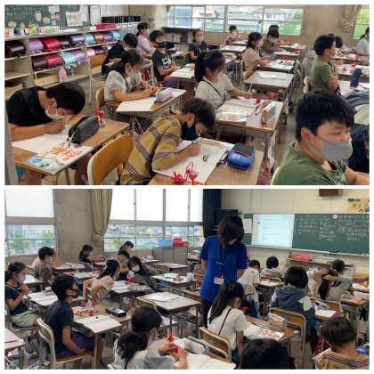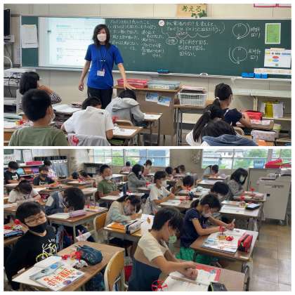 4年生の理化の授業の様子です。「乾電池の向きを変えるとプロペラの回る向きはどのようになるだろう」というテーマで学習をしていました。まず、どうなるか予想して、実験で確かめました。予想通りになったかな?