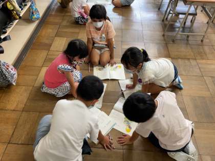 1年生の国語の授業のようすです。「おおきなかぶのおんどくはっぴょうかいにむけてじゅんびしよう」というめあてで学習を進めていました。グループで話し合いながら、上手に発表できるように準備を進めることができましたね。