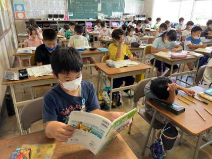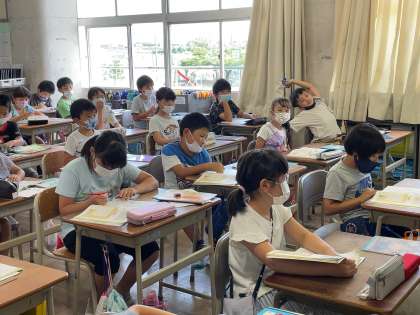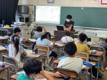 3年生の算数の授業のようすです。「6月と7月に売れた絵本と図鑑の数を調べたグラフを比べよう」というめあてで授業を進めていました。目的に合ったグラフの選び方を考えることができましたね。