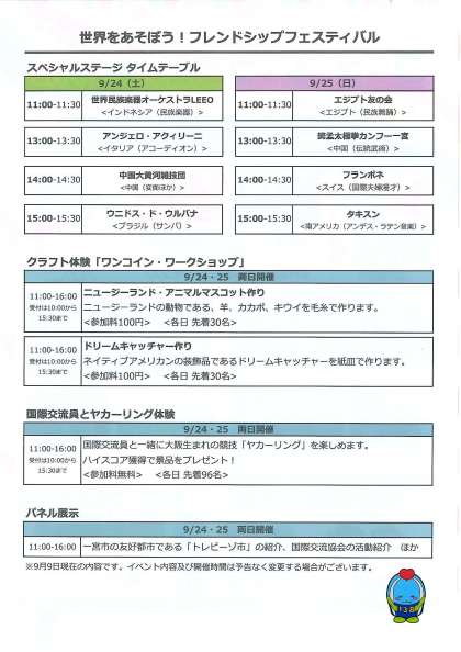 9月15日(木) 世界をあそぼう!フレンドシップフェスティバル