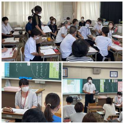 今日は児童のみなさんの下校後、2年1組の教室に職員が集まって、2年生の国語のシミュレーション授業を行いました。今まで2年生を中心に指導案検討を行ってきたものを、実際に授業形式で行って、職員が児童役になって体験し、さらに良い授業になるように意見交流をしました。教育委員会の指導主事さんや一宮市の国語の教科等指導員さんにも参加していただき、アドバイスを受けました。9月28日(水)に2年4組で他校の先生の参観を受けて研究授業を行うことになっています。とても担任の先生と子どもたちの活躍がとても楽しみです。