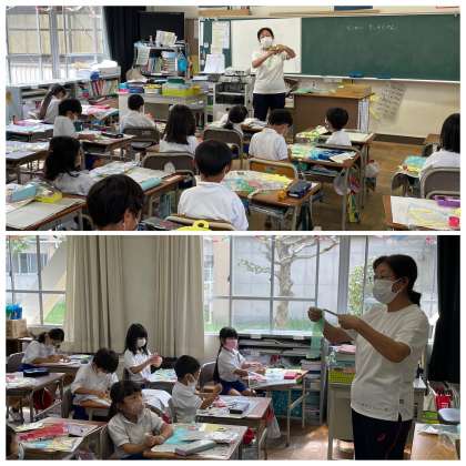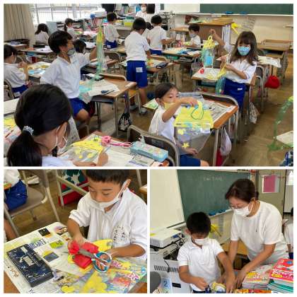 9月16日(金) すいぞくかん【1年図工】 公開日 2022/09/16 更新日 2022/09/16 1年 1年生の図工の授業のようすです。作品の題名を考えたり「何をしているところか」や「工夫したところや気にいったところ」を書いたりしました。