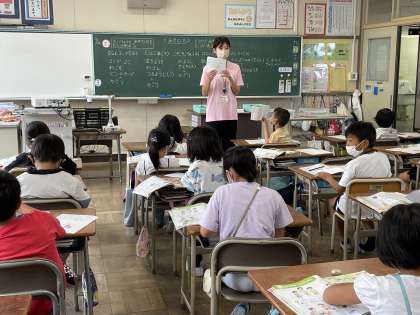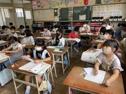 2年生の図工の授業のようすです。「ざいりょうとあそび方をたしかめよう」というめあてで学習を進めていました。どんなおもちゃが出来上がるか楽しみですね。