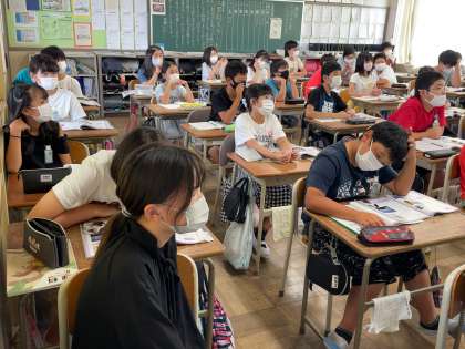6年生の理科の授業のようすです。宇宙での仕事について学習していました。映像で国際宇宙ステーションの仕事や生活について知りました。様々な実験が行われている国際宇宙ステーションは、地上400kmの上空で、90分で地球を1周する速さで回っているそうです。すごいですね。