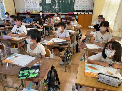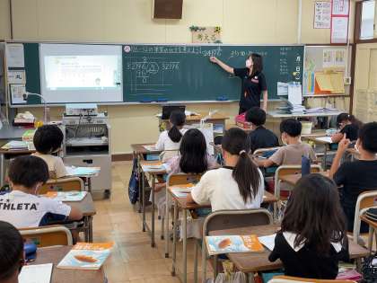 4年生の算数の授業のようすです。「96÷32の筆算の仕方を考えよう」というめあてで学習を進めてました。96を90、32を30など簡単な数をイメージして、いくつでわれそうか予想を立てて計算することが大切だということを確認し、問題を解いて自信を深めていきました。