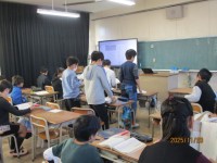 6年生の外国語の授業のようすです。「夏休みの体験を紹介しよう」というテーマで、『What did you eat?』の質問に答えるコミュニケーションを行い、表現に慣れました。