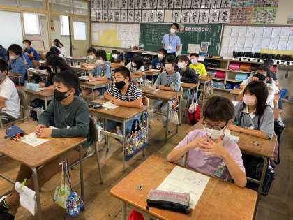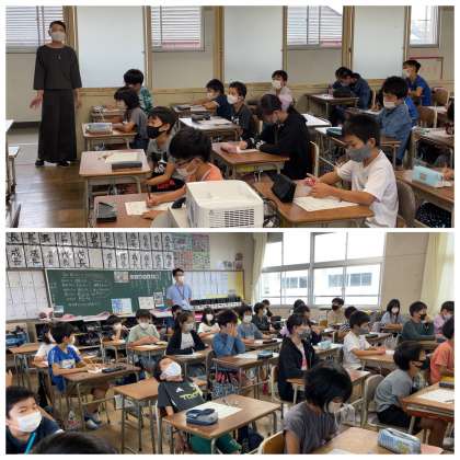 5年生の学級活動の時間のようすです。ピアサポートの授業を教務主任の先生と担任の先生と一緒に行っていました。「すてきな聞き方とはどんな聞き方だろう」というテーマで、仲間を助け、支えるにはどうすればよいか考えました。