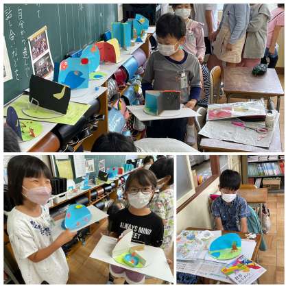 9月22日(木) くるくるランド【3年図工】 公開日 2022/09/22 更新日 2022/09/22 3年 3年生の図工の授業のようすです。終わりがけの時間にお邪魔しましたので、片付けが始まっていましたが、ずいぶん作品が仕上がってきていて、イメージしたものが形になって表れてきて楽しそうでした。