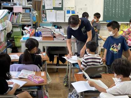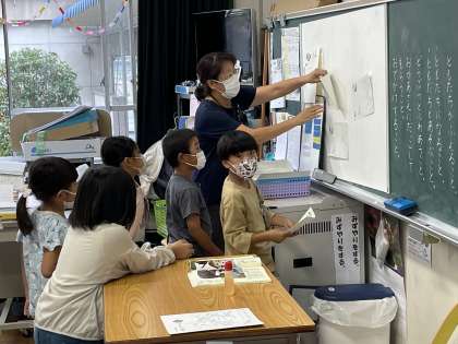 1年生の道徳の授業のようすです。「いきているって」の資料を使って「毎日当たり前にしていることはどんなことかな」「いきているっていいなと思うことはどんなことかな」など考えを伝え合いました。