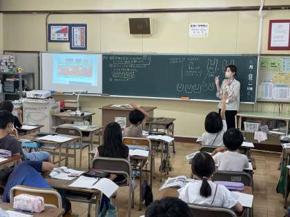 3年生の社会の授業のようすです。「品物を売ることのほかに行っている取組を調べよう」というめあてで学習を進めていました。エコパックの利用の呼びかけやリサイクルコーナーについて知っていることを伝え合って理解を深めていきました。