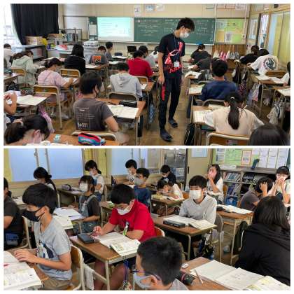 6年生の算数の授業のようすです。「比が等しいかどうか調べよう」というめあてで学習を進めていました。比の値についての理解を深めることができましたね。