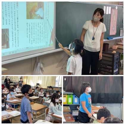 2年生の国語の授業のようすです。「どうぶつ園のじゅうい」の3段落について、みんなで読み取りをしていきました。研究授業でたくさんの先生が見てくれていましたが、元気いっぱいいつも通りにはりきって参加することができてすばらしかったです!