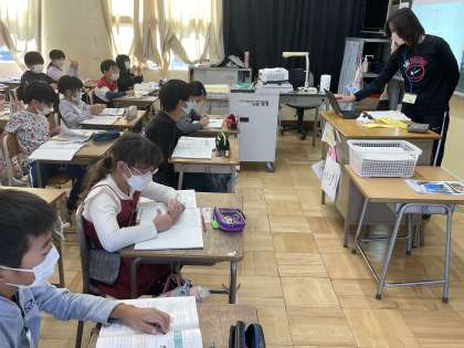 4年生の算数の授業のようすです。「1つの式にして求めよう」というめあてで学習を進めていました。1つの式の中に「+」「−」「×」「÷」があるときにはどこから計算するかよくわかりましたね。