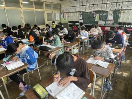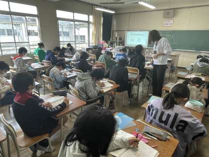 10月28日(金) 1つの点を中心にして【6年算数】 公開日 2022/10/28 更新日 2022/10/28 6年 6年生の昨日の算数の授業のようすです。拡大や縮小の学習で、1つの点を中心にして作図する学習に取り組んでいました。