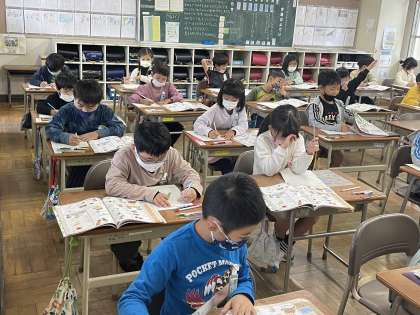 1年生の昨日の授業のようすです。「あきのおもちゃをつくろう」というめあてで学習を進めていました。どんなおもちゃを作ることに決めたかな。完成図をかいて、材料を調べていきました。楽しく遊ぶ姿を想像しながら考えることができましたね。