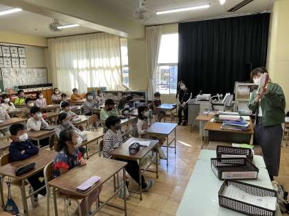 3年生の朝の活動、ボランティアの方による「読み聞かせ」のようすです。