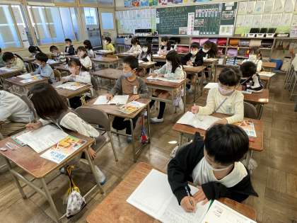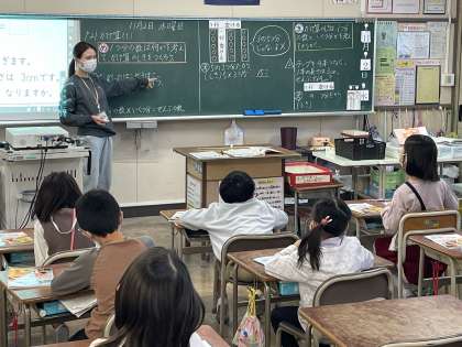 2年生の昨日の算数の授業のようすです。「1つ分の数は何かを考えて、かけ算の式をつくろう」というめあてでかけ算の学習を進めていました。