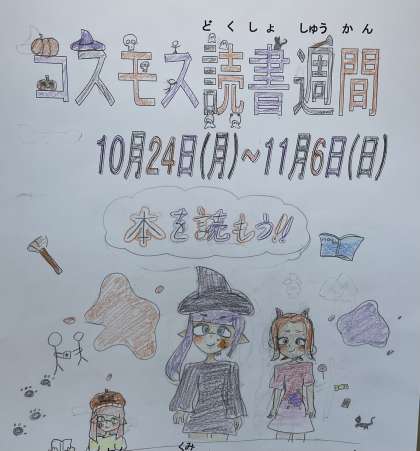 11月3日(木・祝)コスモス読書週間【5年生】 公開日 2022/11/03 更新日 2022/11/03 5年 6日(日)までコスモス読書週間です。本は心の栄養です。素敵な本に出会えるといいですね。5年生のが作ってくれたポスターの一部を紹介します。