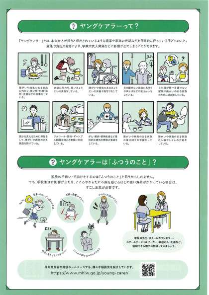 一宮市子ども家庭相談課長さんより、『ヤングケアラー』普及啓発ポスターを小学校にいただきました。掲出依頼がありましたので、校内掲示をするとともにウェブ記事でも紹介いたします。