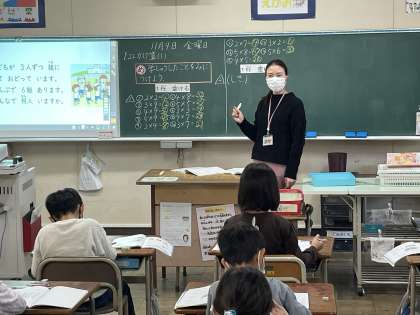 2年生の算数の授業のようすです。「学しゅうしたことをみにつけよう」というめあてで学習を進めていました。九九をどのだんもしっかりといえるようにがんばっていましたね。