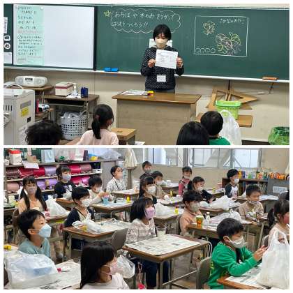11月4日(金) はりえをつくろう【1年生活】 公開日 2022/11/04 更新日 2022/11/04 1年 1年生の生活科の授業のようすです。「おちばや木のみをつかってはりえをつくろう」というめあてで学習を進めていました。どんな絵が完成できたかな。