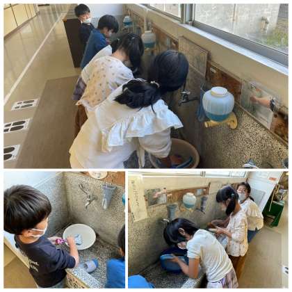 11月4日(金) 一週間のしめくくり 公開日 2022/11/04 更新日 2022/11/04 ひまわり組 ひまわり組さんの学級の時間のようすです。一週間お世話になったシューズをきれいに洗っていました。自分の使ったものは自分できれいに洗えるように、自立の一歩です。一生懸命こすって汚れがなくなりましたね。すばらしいがんばりです!