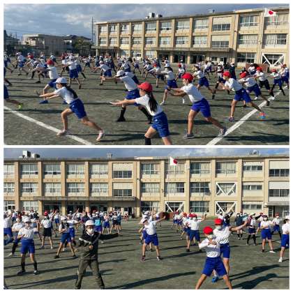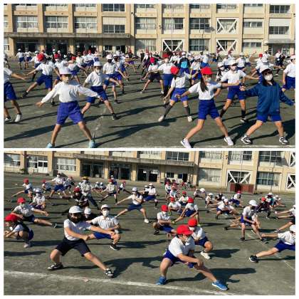 11月4日(金) スポーツ大会に向けて2【6年生】 公開日 2022/11/04 更新日 2022/11/04 6年 6年生の学年体育の授業のようすです。スポーツ大会に向けて、ソーラン節の練習を行っていました。動きがだんだんそろってきましたね。大きなかけ声で、みんなの気持ちが一つになって楽しそうです。