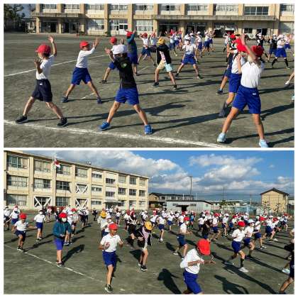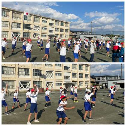 6年生の学年体育、ソーラン節の練習のようすです!