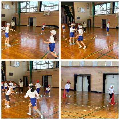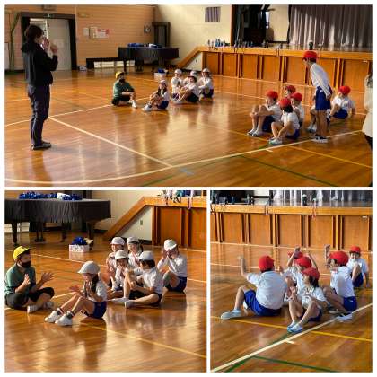 ひまわり組の体育の授業のようすです。みんなで応援もがんばっていてすてきな姿がいっぱいです!