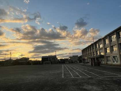 ひがしっ子のみんなが下校した後の16時30分ごろの学校のようすです。きれいな夕焼けが校舎を照らしていました。秋の夕日はきれいですが、すぐに暗くなって夜になってしまいます。ひがしっ子のみなさんは、下校後遊びに出たときは、暗くなる前に、ちゃんと家に帰ることができているかな。おうちの人に心配をかけないように、時間に気をつけて生活するようにしましょうね。