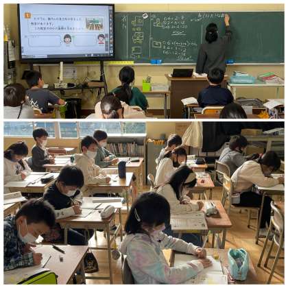 11月15日(火) 大きな面積【4年算数】 公開日 2022/11/15 更新日 2022/11/15 4年 4年生の算数の授業のようすです。「大きな面積を求めよう」というめあてで、平方メートルの単位になる面積をも取れることに挑戦していました。今まで学習した平方センチメートルとの大きさの関係もしっかりと確認していこうね。