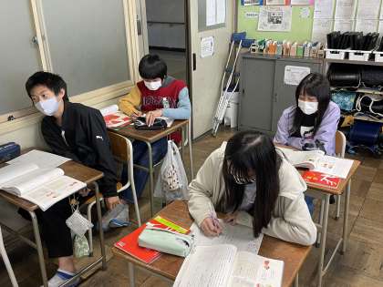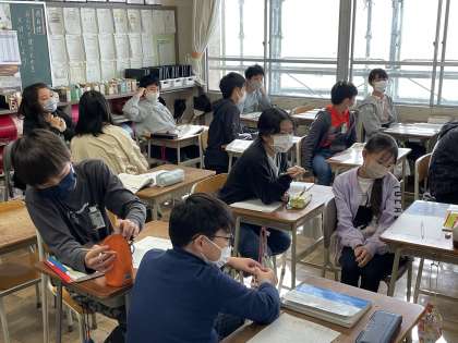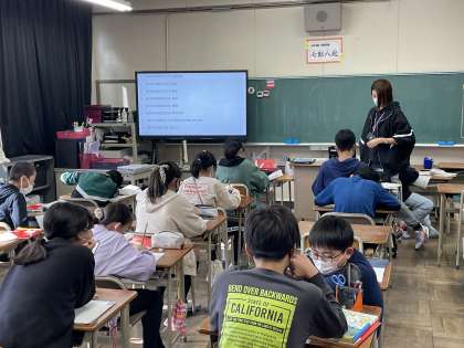 6年生の国語の授業のようすです。「自分の伝えたい日本文化の題材を決めよう」というめあてで学習を進めていました。どんな日本文化を伝えたいか、プリントに具体を書き込んで計画を立てていきました。