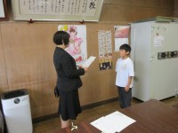 長放課の図書館のようすです。本を借りるためにおおぜいの東っ子が来館し、図書委員さんから貸し出しの手続きをしてもらっていました。楽しい本、興味深い本がたくさんありますね。図書館でたくさんの本に出会って、心に栄養をいっぱいあげましょう!
