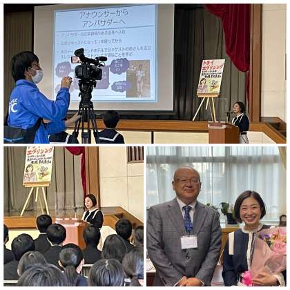 中3のときに将来の夢を「アナウンサーになりたい」と笑顔で語ってくれていた今枝さんがどうしてアンバサダーを夢見ることになったのか。挑戦の中でどんなことを感じたのか。講演から中学を卒業してからの経験と努力を知り、心が熱くなりました。中学生に伝えたいこととして次のようなことを語ってくれました。