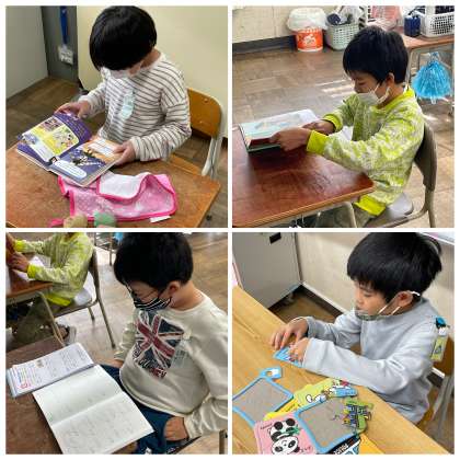 11月15日(火) 長放課の終わりごろ【ひまわり組】 公開日 2022/11/15 更新日 2022/11/15 ひまわり組 長放課の終わりごろのひまわり組さんのようすです。今日は教室で過ごす日だったので、読書やパズルや勉強などをして過ごしていました。落ち着いて自分のやりたいことに取り組むことができましたね。