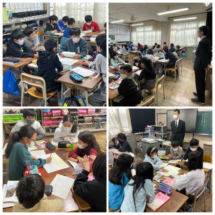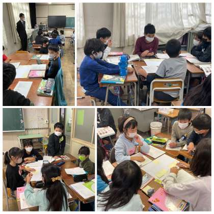 5年生の国語の授業のようすです。「考えをまとめる話し合いをしよう」というめあてで学習を進めていました。テーマは「冬休みにしたいこと」です。いろんな意見を班でどのように工夫してまとめることができたかな。