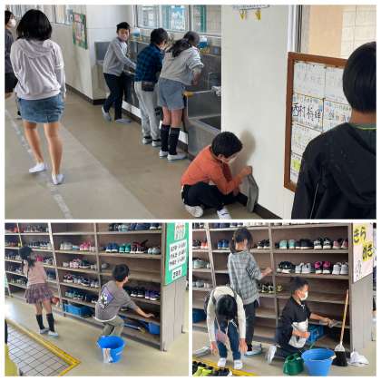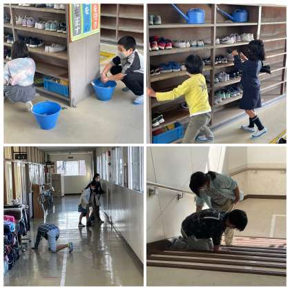 児童のみなさん!やまひがピカピカ作戦初日、どうでしたか?校長先生は、とてもよくがんばる姿が見ることができて幸せな気持ちになりました。南舎を中心に見回りましたが、放課の時間まで階段を磨く3年生もいました。みんなの心の中に自分の持ち場を、責任をもってきれいにする気持ちを大きく育んでいける期間になるといいなと思います。がんばりましょうね!