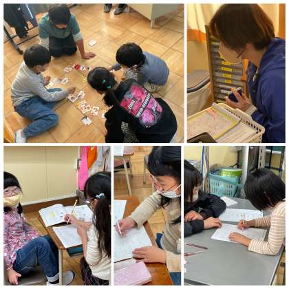 ひまわり組の授業のようすです。言葉の学習や計算の練習に一生懸命取り組みました。友だちががんばるように応援もできましたね。