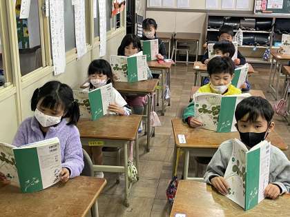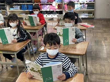 今週の1年生の国語の授業のようすです。教科書を役割ごとに順番に音読しました。はっきりとした声で聞き手に伝わるようにしっかりと音読できましたね。