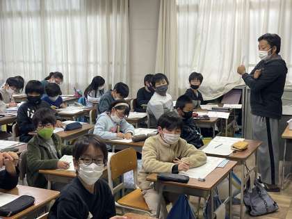 今週の5年生の書写の授業のようすです。委員会からのお知らせについて、どこをどんなふうに修正するとよいか、レイアウトや書き方などについて話し合いました。