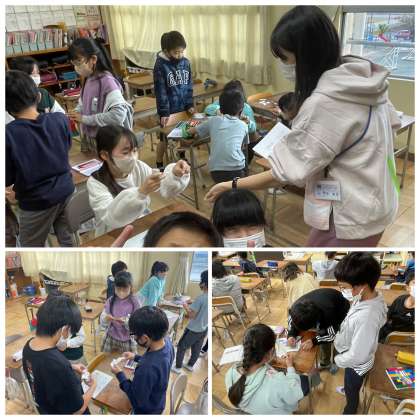 11月18日(金) みんなでなぞとき【4年学活】 公開日 2022/11/18 更新日 2022/11/18 4年 今週の4年生の学級活動の時間のようすです。ヒントの言葉を解読して、どんな色の絵が完成できそうかグループで話し合いました。楽しみながら相談できましたね。さて、どのグループが正解に近づけたかな。