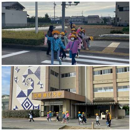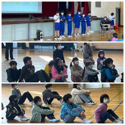 11月17日(木) みつばち交流会1【ひまわり組】 公開日 2022/11/17 更新日 2022/11/17 ひまわり組 大和地区の小中学校の児童生徒が交流する機会をつくって互いの理解を深め親睦を図ることを目的に、3年生以上のひまわり組さんが中学校を訪れ、大和西小学校さんと大和中学校さんとの交流会を行いました。 大和中学校のようすを紹介してもらったり、ひまわりさんが出し物を紹介したり、ドッジビー大会に参加したりして、お友だちと楽しく過ごすことができました。