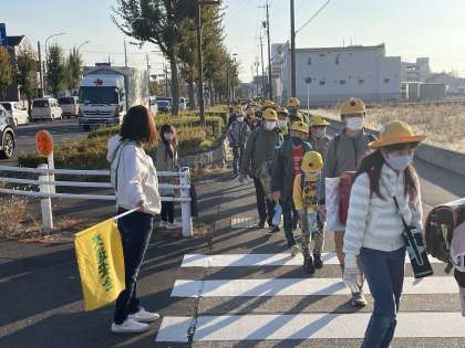 今朝の気温は10度を下回りました。登校のときのお日さまの光がとてもうれしいですね。晩秋の寒さを感じる中、今日も子どもたちが来る前から担当場所にPTA旗ボランティアさんや地域見守り隊の方が立ち、子どもたちの横断を支援していただきました。ありがとうございました。子どもたちが元気な声であいさつできるように、笑顔で進んで声をかけていただいています。心がぽっと温かくなります。感謝感謝です!