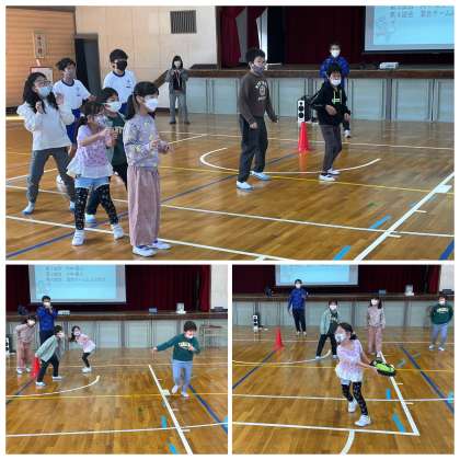 11月17日(木) みつばち交流会3【ひまわり組】 公開日 2022/11/17 更新日 2022/11/17 ひまわり組 ドッチビーで大和西小学校さんや大和中学校の友だちと対戦しました。うまくよけたり投げたりして、みんな大活躍でしたね。大きな声援を送ることもできました。