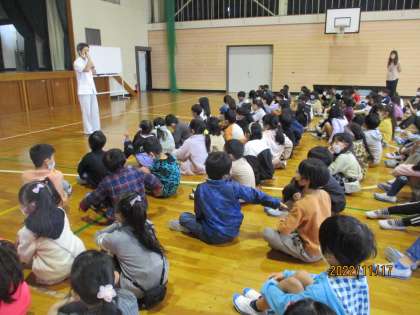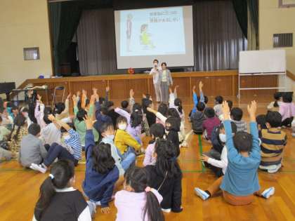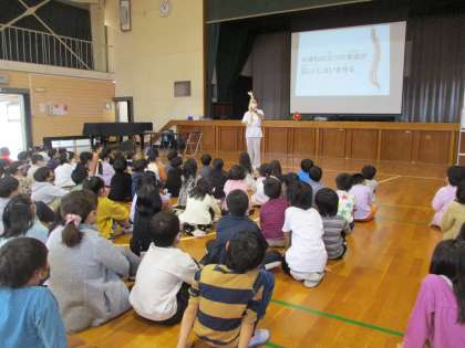 2年生の学年の時間のようすです。姿勢調整士の方をお招きして、姿勢教室を行いました。