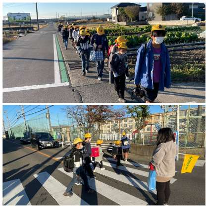 今日は日差しのおかげで少しあたたかさを感じる朝になりました。各交差点では、子どもたちの到着前からPTA旗ボランティアさんや地域見守り隊の方が立ち、やさしい笑顔で迎えてくださいました。交差点であいさつをするごとに、心があったかくなってあいさつの声が大きくなっていったようです。見守りと応援に感謝感謝です!